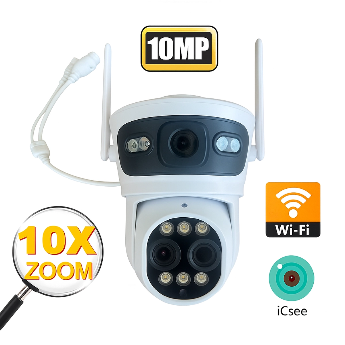 Разгледай WiFi камера LYLU с 3 обектива, 10MP резолюция и 10x Zoom. Перфектна за нощно наблюдение. Поръчай онлайн!
