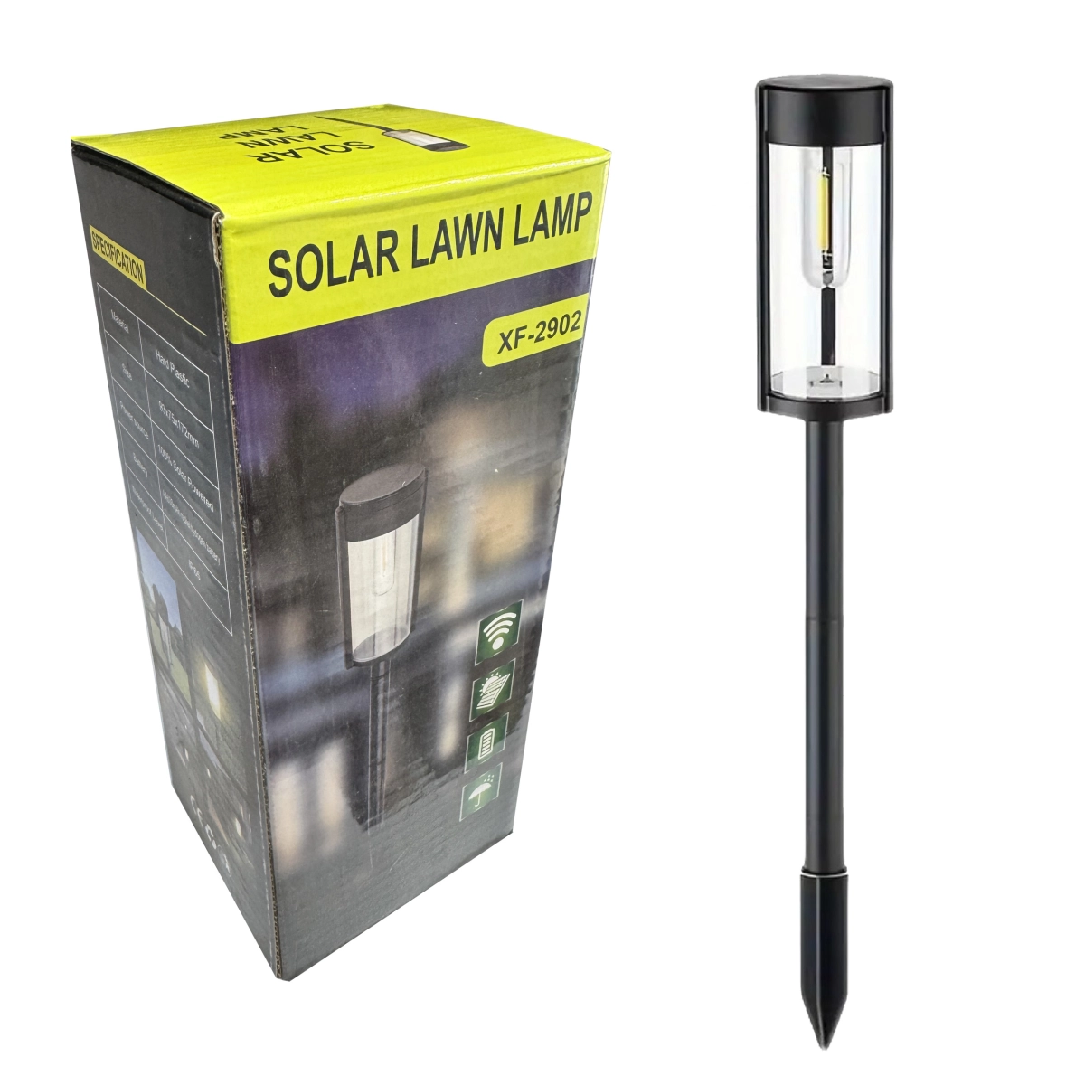 Купи соларна градинска лампа XF-2902 с топла светлина 3000K в черен цвят. Перфектна за уютна атмосфера навън. Поръчай сега!