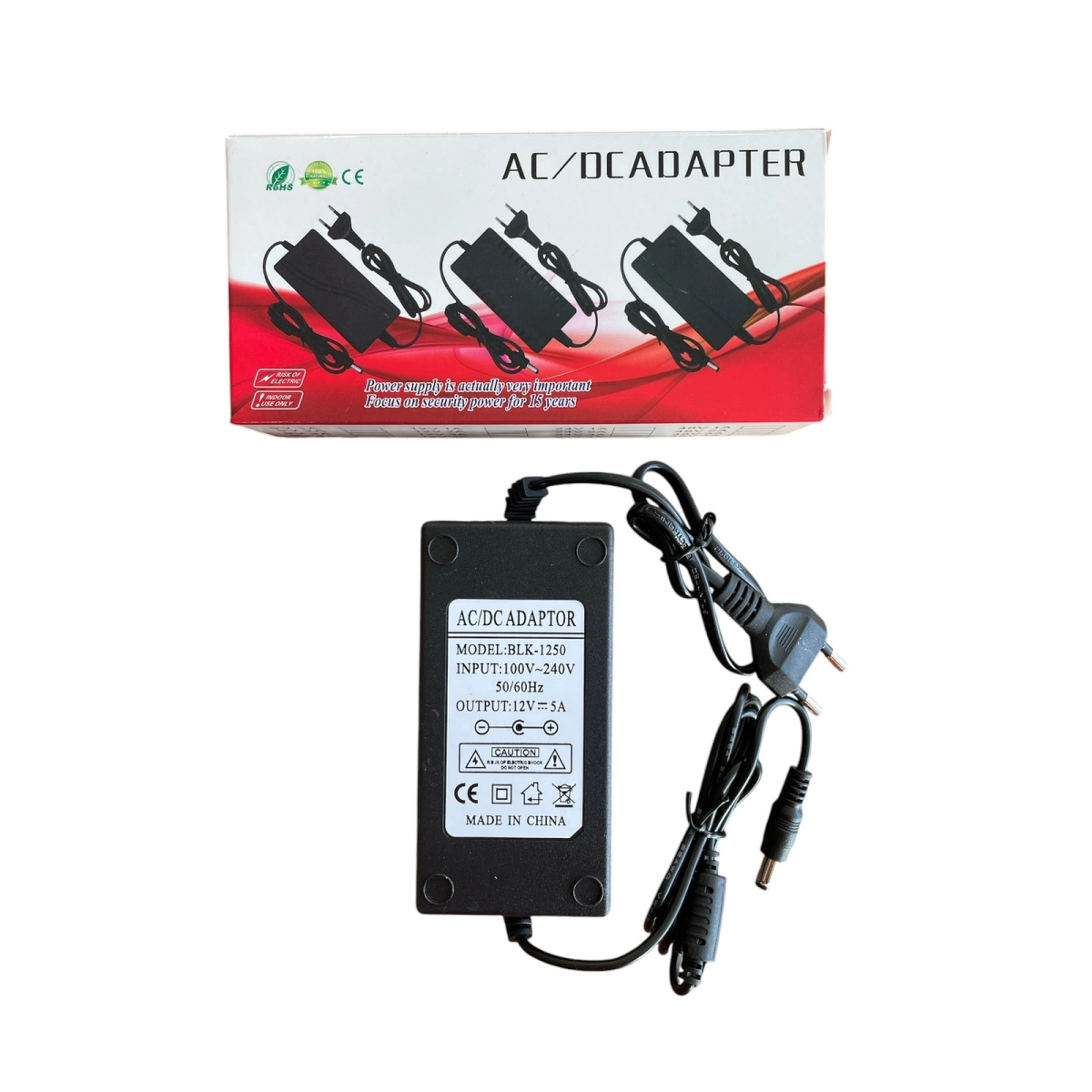 Мощен захранващ адаптер 12V 5A за видеонаблюдение BLK-1250. Осигурява стабилно захранване. Купи онлайн с бърза доставка!