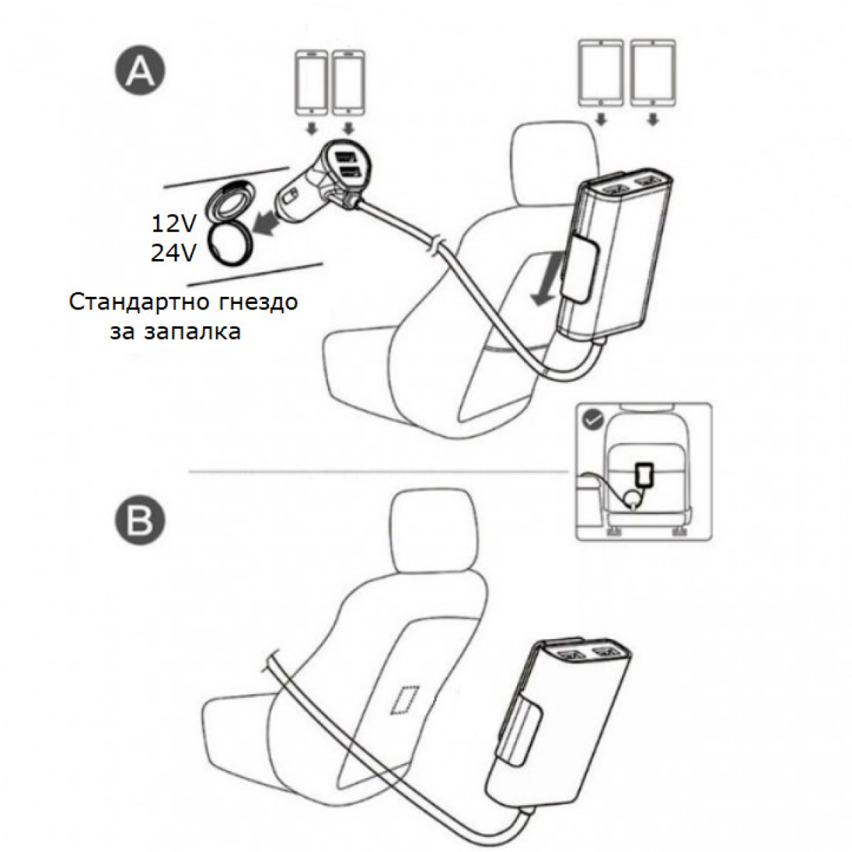 - Удължителният кабел с дължина 1 метър позволява удобно разполагане и лесен достъп за всички пътници.