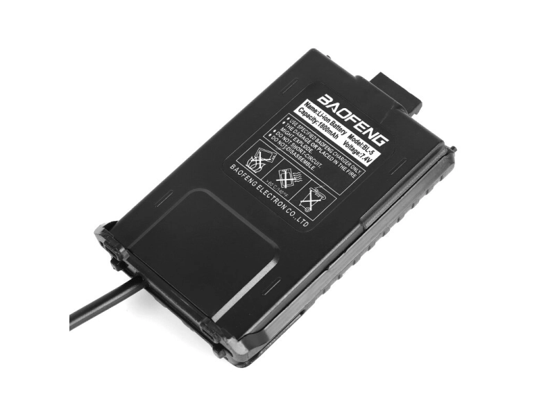 Стационарна батерия за кола за радиостанция Baofeng UV-5R е аксесоар, който задължително трябва да присъства в оборудването на всеки радиолюбител и професионалист. Често се случва мобилната батерия на уоки-токито да се изтощи в най-неподходящи момент. В този момент няма нищо по-ценно и важно от това да използвате мощността на автомобила си, за да съживите радиостанцията.Продуктът е от първа необходимост за ловци, любители на риболова, планинари, туристи и други редовно пътуващи хора, за които комуникацията е жизнено важна. Батерията използва изхода на запалката, от където черпи необходимата енергия за захранване на уоки-токито. В другия край е външният капак, който поставяте на модела Baofeng UV-5R.ЗАМЕСТИТЕЛ НА БАТЕРИЯНа практика моделът представлява заместител на оригиналната мобилна батерия. С него ще може да ползвате радиостанцията, докато пътувате. Това е важно, защото ще можете свободно да комуникирате с останалите в групата.Самото устройство представлява два накрайника свързани помежду си. Първият изглежда абсолютно еднакво на батерия BL-5, разликата се изразява в това, че вътрешността на заместителя е куха. За да го поставите в уоки-токито, то трябва да премахнете мобилната батерия и на нейно място да поставите кухата. По този начин преобразувате UV-5R станция от мобилна в стационарна такава.Другият накрайник служи за подаване на енергия. Той представлява стандартен преходник за запалка на автомобил. Двата накрайника на зарядното са свързани помежду си чрез навит кабел с дължина 30 см. В разтегнато състояние той достига до 70 см, което позволява станцията да се ползва от всяко място в автомобила.Моделът е подходящ за радиостанция Baofeng UV-5R и производните на нея, които ползват един и същ заден капак..ТЕХНИЧЕСКИ ХАРАКТЕРИСТИКИ:Входящо напрежение: DC 12VМакс изход: 3АЕфикасност: >90%Дължина на кабела: 30 см. разгъва се до 70см