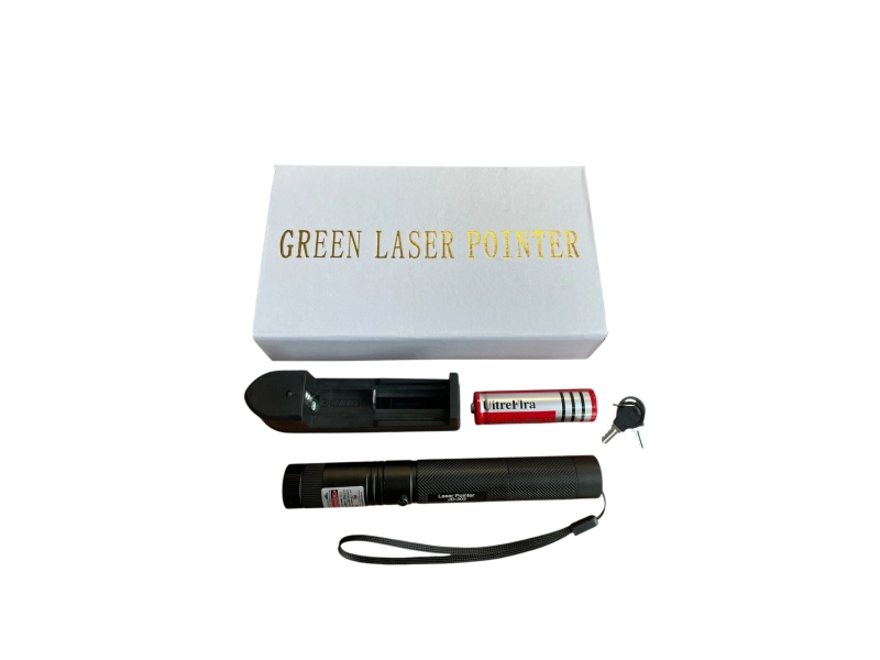 Спецификации:Това е един полезен артикул за фотографи, художници, астрономи, учители, студенти, екскурзоводи, спасители, строителни инженери и работници, учени, охрана. При разходка на домашни любимци (кучетата и котките обичат преследването на лазерната точка)Артикула представлява зелен лазер със система за забавление. Предната част е конструирана по начин да може да се върти приставка накрая на лазера и да пречупва светлината в множество движещи се точки. При въртенето на приставката се получава страхотен светлинен ефект - подобен на ефектите в дискотека. Приставката може да бъде премахната и артикула да се ползва с насочена светлина.Лъча се наблюдава по цялото протежение и може да се ползва за показване на отдалечени обекти. Дължината на лъча е с дължина до 8 км. Солидна алуминиева изработка, лазера е снабден и със заключваща система в задния край.Заключващата система е предвидена в случаите в които искате да предотвратите достъп на не оторизирани лица, деца и т.н. Ключалката е с две ключета.Артикула е захранен с мощна презареждаема батерия модел 18650/3800mAh 3.7V. В комплекта има включено зарядно устройство за акумулаторната батерия, зареждането става на 220 волта, от електрическата мрежа.Наличие на удобна каишка за носенеДължина на вълната: 532 nm.Обхват на лазера: 1000 метра.Батерия: 18650 Li-Ion Батерия.Работно напрежение на батерията: 3.7-4,2V.Заключващ предпазен механизъм .Размер: Дължина 160 мм. Дебелина 2.3 мм. Тегло на целия комплект: 320 гр.Предупреждение: Да не се свети към очите на други хора, може да доведе до сериозни увреждания на зрението. Да се пази далеч от деца. Комплекта включва:1 бр. Лазер HL-303.1 бр. Зарядно за батерии.1 бр. Акумулаторна батерия модел 18650.2 бр. Ключове за заключване.