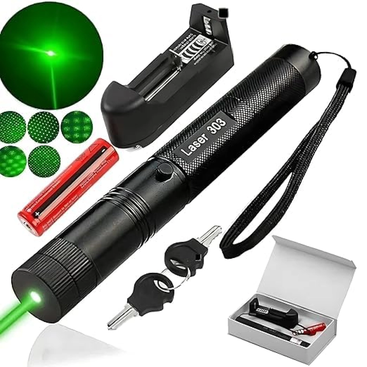 Зелен лазерен показалец Green Laser Pointer 303 е висококачествен инструмент, подходящ за широк спектър от приложения – от професионални презентации до развлекателни дейности. Със своя интензивен зелен лъч и впечатляващ обхват, този лазер е идеален за насочване, маркиране и забавление на открито и на закрито.