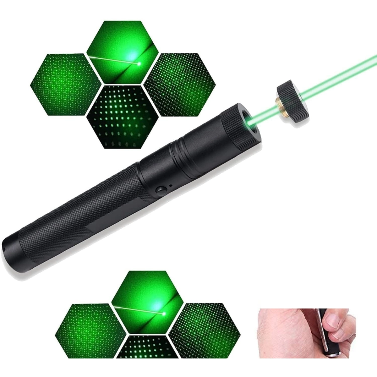 Зелен лазерен показалец Green Laser Pointer 303 с дълъг обхват и надеждна защита Зелен лазерен показалец Green Laser Pointer 303 е висококачествен инструмент, подходящ за широк спектър от приложения – от професионални презентации до развлекателни дейности. Със своя интензивен зелен лъч и впечатляващ обхват, този лазер е идеален за насочване, маркиране и забавление на открито и на закрито. Основни характеристики Дължина на вълната: 532 nm, осигурява ярък и видим зелен лъч, който е лесно забележим дори при дневна светлина. Обхват на лъча: до 1000 метра, позволява прецизно насочване и показване на обекти на значителни разстояния. Захранване: мощна презареждаема 18650 Li-Ion батерия с капацитет 3800mAh, гарантираща дълго време на работа с едно зареждане. Заключващ механизъм: вграден предпазен заключващ бутон с две ключета, който предотвратява неоторизирана употреба и осигурява безопасност при съхранение. Корпус: изработен от здрав алуминий, осигурява лекота и издръжливост при ежедневна употреба. Размери и тегло: дължина 160 мм, диаметър 23 мм и тегло 320 грама, удобен за носене и използване с една ръка. Предимства на Green Laser Pointer 303 Висока видимост: зелената светлина е по-добре видима за човешкото око в сравнение с червените лазери, което прави този показалец предпочитан избор за професионална и развлекателна употреба. Многофункционалност: идеален за учители, екскурзоводи, строителни инженери, астрономи, както и за домашни любимци, които се забавляват с движението на лазерната точка. Забавни светлинни ефекти: завъртащата се приставка пречупва светлината в множество движещи се точки, създавайки ефект, наподобяващ дискотечна атмосфера, подходящ за парти и развлечения. Удобство при зареждане: включено зарядно устройство за 220V мрежа осигурява бързо и лесно зареждане на батерията, елиминирайки нуждата от постоянна смяна на батерии. Безопасност: заключващата система с ключове гарантира, че лазерът няма да бъде активиран от деца или непознати, което е особено важно при използване в семейна среда. Приложение на лазерния показалец Този зелен лазерен показалец е предназначен за различни ситуации, където е необходим прецизен и ясен лъч. Подходящ е за професионални презентации, астрономически наблюдения, маркиране на обекти на открито, както и за развлекателни цели като игри с домашни любимци. Благодарение на здравата конструкция и дългия обхват, лазерът е надежден помощник както на работа, така и в свободното време. Изберете Green Laser Pointer 303 за да се насладите на мощен, надежден и безопасен лазерен показалец с разнообразни приложения и впечатляващи характеристики.