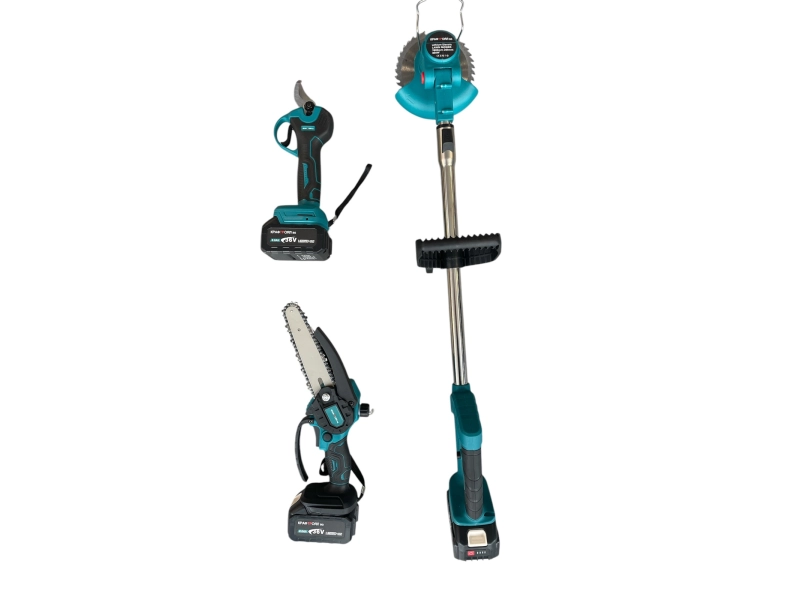 Мощност и удобство в един комплект! Този професионален комплект включва акумулаторна лозарска ножица, мини резачка и тример за трева, като осигурява прецизна и ефективна работа в градината, лозето или двора.