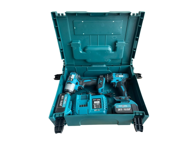Открийте мощния комплект акумулаторен безчетков импакт и винтоверт KraftRoyal 36V 8Ah в син цвят – идеален за професионални и домашни ремонти. Дълъг живот на батерията, висока производителност и удобство при работа. Поръчайте сега и улеснете всяка задача! 🔧
