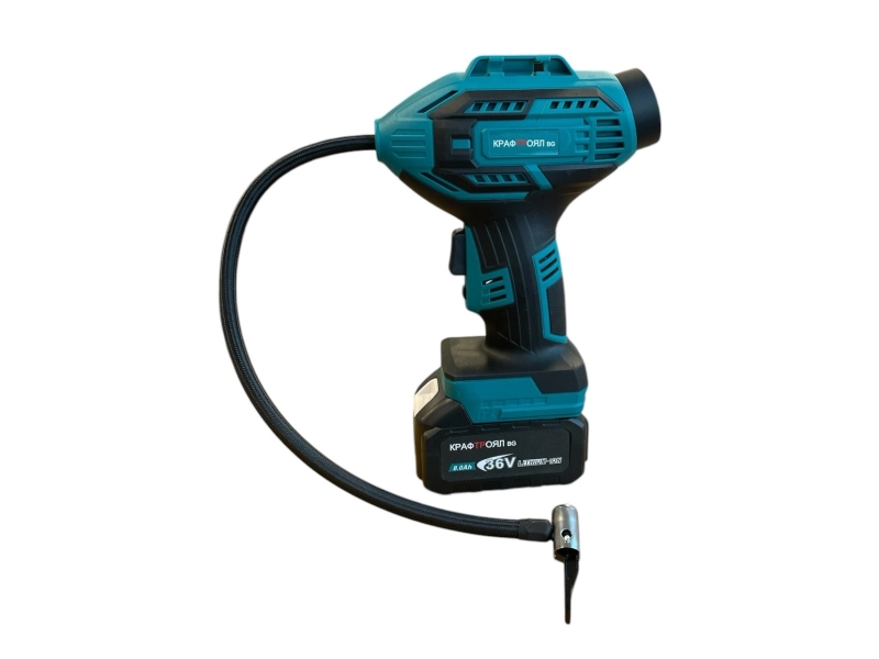 Акумулаторният компресор за гуми KraftRoyal е идеален инструмент за бързо и лесно надуване на гуми, благодарение на мощните две батерии с капацитет 36V. С включеното зарядно устройство, може да заредите батериите за оптимално използване на компресора. Устройството е оборудвано с дисплей, който показва текущото ниво на налягането в гумата, като позволява лесно и точно следене на напомпането.Една от основните му функции е възможността за задаване на стойност на налягането, което искате да постигнете. След като настроите желаната стойност, компресорът ще се изключи автоматично, когато налягането в гумата бъде достигнато, което гарантира безопасност и прецизност при надуването.Този акумулаторен компресор е компактен, лесен за използване и предлага мобилност, като няма нужда от електрическа мрежа. Подходящ е както за автомобили, така и за велосипеди, мотоциклети или други гуми, които изискват редовно надуване.