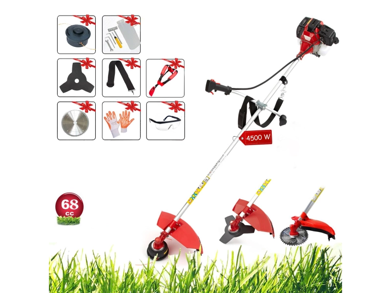 Тримерът е оборудван с мощен и екологичен бензинов двигател с работен обем 74 кубика и мощност 4500W.