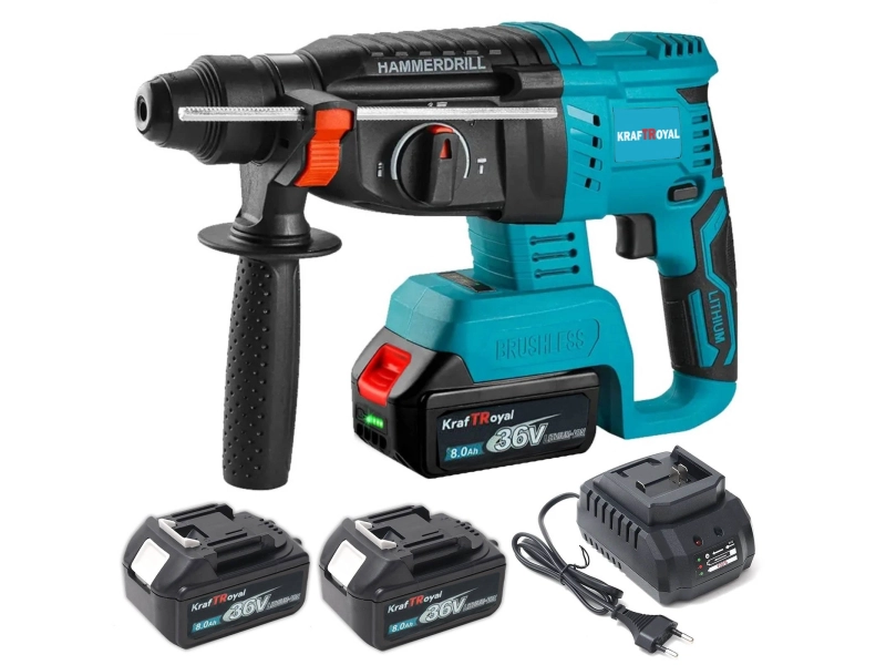 Мощен акумулаторен перфоратор винаги под ръка – безчетков мотор за постоянна производителност KraftRoyal 36V 8Ah с 2 батерии + куфар