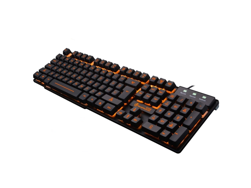 Геймърска клавиатура с кехлибарена подсветкаУстойчива срещу водни пръски104 бутонаUSB свързванеЛазерно гравирани клавиши