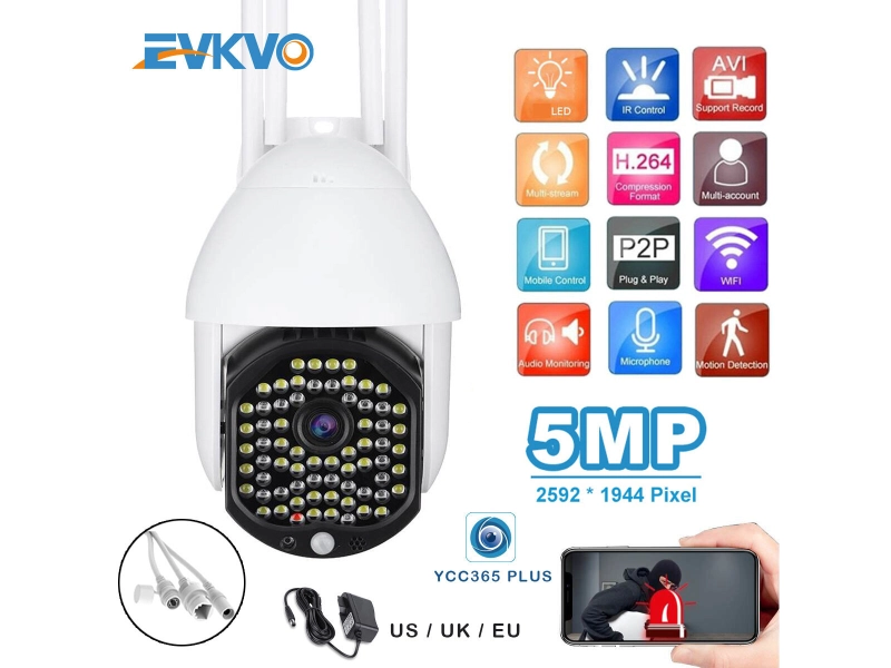 Комплект 2бр. ВОДОУСТОЙЧИВА WIFI FULL HD 2.0MP 68 LED 320° ВЪРТЯЩА КАМЕРА С MOTION TRACKING Мощна Външна Водоустойчива Камера Wifi Full HD 2.0MP 68 LED 320° автоматично въртяща, куполна от ново поколение! ЦВЕТНО НОЩНО ВИЖДАНЕ! Широкообхватна! Перфектно качество и на нощен запис! До 8 пъти ZOOM! IP66 влаго и водоустойчивост! Най-мощния и качествен модел предлаган до момента е само при нас! Inteligent Tracking за автоматично завъртане и следене на обекти от камерата! Камерата притежава функцията Motion Tracking + Inteligent tracking (автономно следене на обекта), а не само моушън детекшън ( нотификации при движение в обсега на камерата). Камерата използва приложението ycc365plus. Чисто нови въртящи (PTZ) на 320° градуса по хоризонтала и 90° градуса по вертикала се безжични WIFI IP Full HD камери със резолюция 1920х1080 FULLHD, 2.0MP Lend , 3.6mm фокусПрахо-влагоустойчиви, покриват стандарт IP66 могат да бъдат поставени на открито. Снабдени с 68 ДИОДА, които могат да покрият до 30 метра видимост през тъмната част от денонощието. Интегриран слот за поставянето на микро карта (microsd) до 128гб капацитет, за запис на видео и/или снимки. Опция за свързване към WiFi рутер и гледане дистанционно посредством мобилни данни или WiFi връзка на телефона. Вграден сензор за движение при, който камерата може да записва единствено и само когато има движение пред нея. В камерата е монтиран микрофон и високоговорител, така че да слушате какво се случва около камерата, а посредством високоговорителя можете от телефона да говорите и да се възпроизвежда от камерата.Спецификация:- Видео резолюция 1920х1080 fullhd, Lens, 2.0MP Image 3.6mm фокус- Сензор - HI3518E+SC2235 15fps- Свързаност - безжично през WiFi 2.4g b,g,n до 50 метра в зависимост от сградите, жично през LAN/UTP/ кабел.- Подръжка на ONVIF протокол /камерата може да бъде звързана към мрежов видео рекордер NVR.Софтуер:- Бърза и лесна настройка в рамките на 5 мин. Приложенията разполагат с богата гама от различна конфигурация на камерите.- Сензор за движение - 3 типа чувствителност /ниска, средна, висока/. Известяване на телефона при наличието на движение. Дистанционно гледане на записаните видео клипове или снимки от картата памет през приложението.- Качество на записваните видео клипове: 6 степени.- Време на записване при движение - от 5 до 120 мин + запис на звук, презапис при запълване на картата памет- Скорост на въртене на камерата - слабо, нормално, бързо.- Камерите предоставят достъп през WEB интерфейс по IP адреса, който взема.Комплекта включва: PTZ /въртяща камера/, захранващ адаптер 12v, 2a * Гаранция: 24 месеца