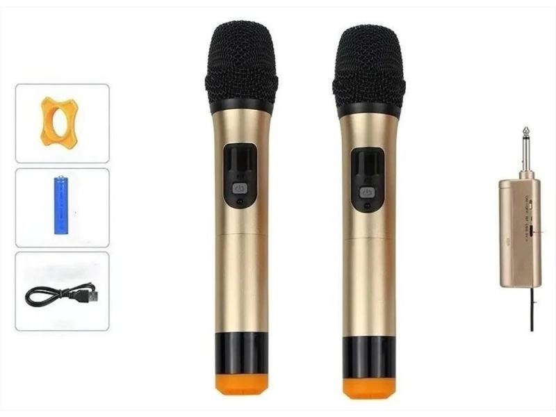 Два броя висок клас безжични HiFi микрофони с приемник WVNGR WG-200IIМарка: WVNGRМодел: WG-200IIЧестота на пренос : 500 - 850MHzЧестота на стабилизиране: 0.002%Чувствителност: > 96 db Захранване приемник: 1 бр. батерия 18650 - акумулаторнаЗахранване микрофони: 2 бр. батерии ААЗахранване приемник: 1 бр. батерия 18650 - акумулаторнаЗахранване приемник: 1 бр. батерия 18650 - акумулаторнаЗахранване приемник: 1 бр. батерия 18650 - акумулаторна Обхват: до 60 метраДисплей: показва честотата на всеки микрофонСъдържание на комплекта:Безжични микрофони с дисплей: 2 бр.Приемник с антена: 1 бр.Батерия за захранване: 1 бр. 18650Батерии АА за микрофоните: 2 бр.Кабел за зареждане на приемника: 1 бр.