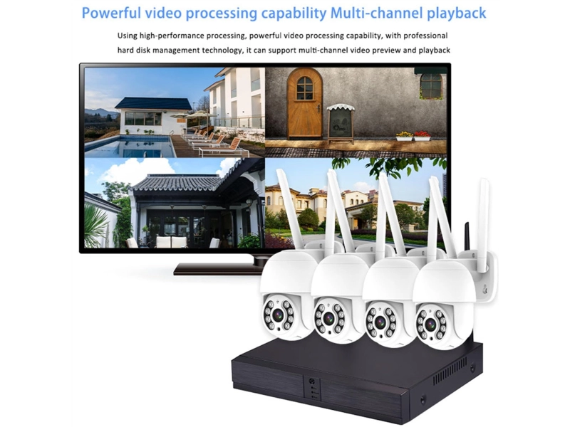 Комплект с 4 безжичени въртящи камери и NVR записващо устройство