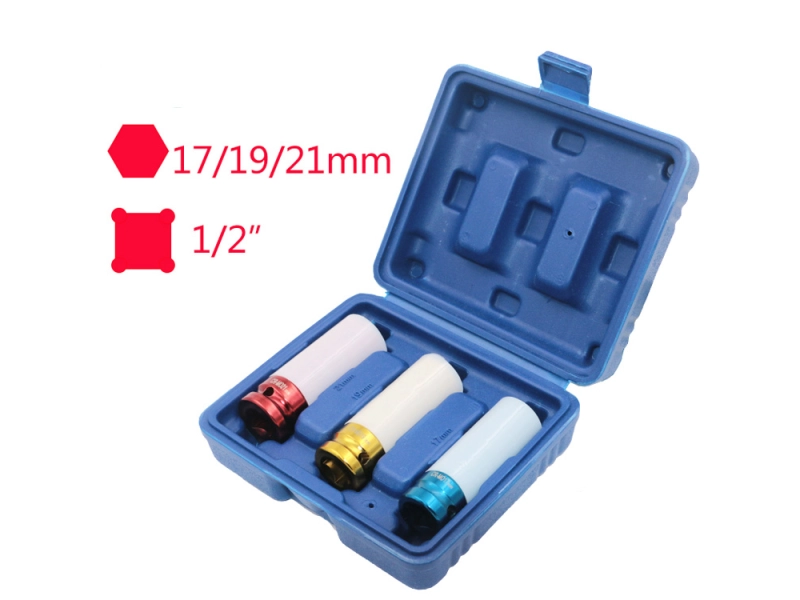 Комплектът съдържа три удължени вложки с размери 17 мм, 19 мм и 21 мм.