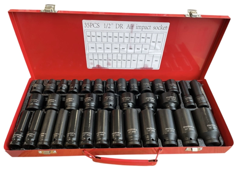 Този комплект ударни вложки KraftRoyal е перфектният избор за професионални и любителски ремонти. С 35 части и стандартни и дълбоки вложки от 8 до 32 мм, той предлага изключителна гъвкавост и здравина за работа с различни болтове и гайки.