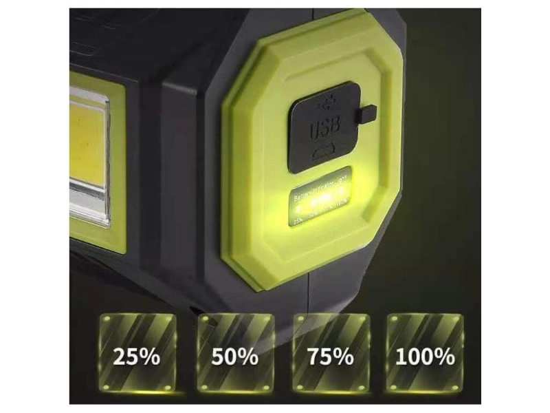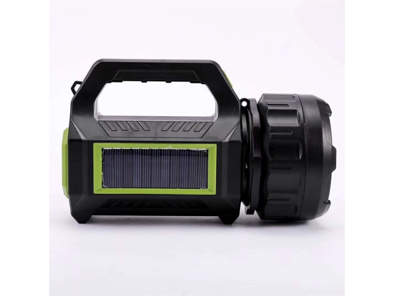 Представяме Ви Акумулаторен фенер HEL-T95 със супер мощен лед диод 10W T6 CREE и работно разстояние до 500м.Вградения соларен панел го прави изключително практичен и удобен при при къмпингуване и разходки нощно време в гората, за лов и риболов и много други случаи.Устройството има вградена странична светлина с три режима: слаб 50% и силен 100% и червена SOS светлинаЛед фенера е изграден от качествен корпус и е много удобен за работа. Вградената акумулаторна батерия му позволява безпроблемна работа.В задната част има изведен USB извод за зареждане на различни устройства на 5V – телефони /GSM/, таблети, MP3 плеари и др.Характеристика:Модел – HEL-T95;Батерия- Li-on 20000mahLED диод – 10 W, Т6 CREE;Вградена акумулаторна батерия;Здрав корпус;Кристален отражател с диаметър 105 mm, осигуряващ светлинен лъч 2000 lm;Размери – 190мм/130мм/80мм;Време на зареждане – до 12 h;Време на непрекъсната работа- до 16 h;Три режима на работа – 50%, 100%, мигащ червен (SOS).Включено в комплекта:1бр. led прожектор1бр. usb кабел за зареждане1бр. дръжка за носенеАко прожектора се ползва рядко, се препоръчва зареждане поне на 3 месеца веднъж, за удължаване живота на батерията.Не презареждайте за повече от 24 часа прожектора