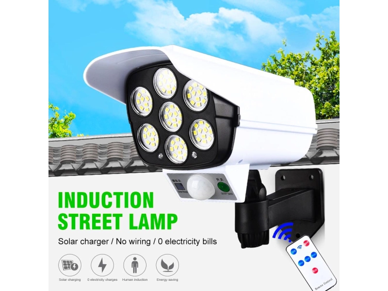 - Слънчева светлина и защитна имитация на наблюдателна камера 2 в 1 - Пазете дома си в безопасност от натрапници. Със 77 ярки светодиода, активиращи се с движение и елегантен дизайн с нисък профил. Плюс реалистична имитация на охранителна камера.