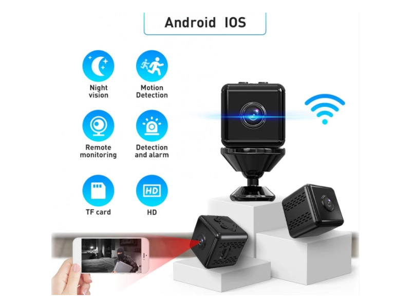 Тази компактна и ефективна мини IP камера е перфектното решение за наблюдение в дома или офиса. Тя предлага лесна настройка и поддържа 1080P резолюция (може да се избере през приложението), което гарантира ясни и детайлни изображения.Основни характеристики: 1 мегапикселова резолюция: Можете да изберете 1080P резолюция през мобилното приложение за по-висока детайлност на видеото. Вградени горещи точки: Камерата може да работи дори без налична мрежа. Поддръжка на мобилни приложения: Работи с приложения за Android и iOS, които можете да изтеглите от Google Play или App Store. Вградена батерия (500mAh): Осигурява около 2 часа работа, което е удобно за краткосрочно наблюдение. Вграден микрофон: Камерата има микрофон, който позволява записване на аудио заедно с видеото. IR нощно виждане: Поддържа нощен режим, който трябва да се включи ръчно, осигурявайки видеонаблюдение дори в тъмни условия. Поддръжка на micro SD карта: Може да съхранява записи на TF карта до 128GB. Приложение: Използвайте приложението iWFCam за контрол и настройка.Спецификации: Ъгъл на наблюдение: 90 градуса. Обхват на наблюдение: 60 градуса. Формат на компресиране: AVI. Максимален капацитет на карта памет: До 128GB. Вграден микрофон: Да. Батерия: Вградена вътрешна батерия за мобилност.Пакетът включва: 1 x Мини камера. 1 x Стойка. 1 x USB кабел. 1 x Ръководство за потребителя.Забележка: Леките отклонения в размера могат да се дължат на ръчно измерване. Цветът на камерата може да варира в зависимост от фотографските условия и настройките на дисплея.
