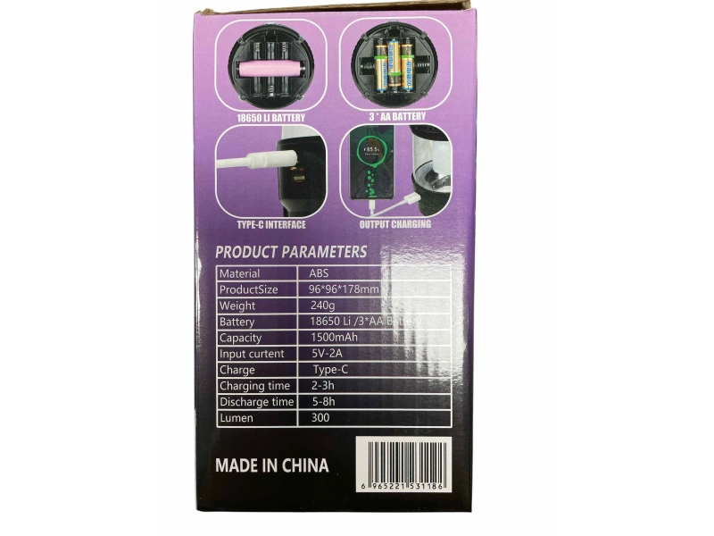 С шестоъгълната си форма и компактни размери (9,6 см. дължина, 17,8 см. височина и 8 см. ширина), тази лампа е не само функционална, но и стилна. Изработена от висококачествена ABS пластмаса, тя е здрава и устойчива на употреба. Многоцветната светлина създава вълшебна атмосфера, а регулируемата посока на светлината ви позволява да настроите осветлението според вашите нужди. С пластмасов сенник за разпръскване на светлината и удобен бутон за управление, тази лампа е перфектното допълнение към всяко пространство.