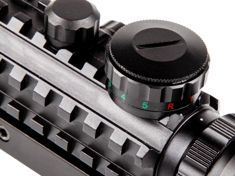 - Червената точка на лазера е видима както през оптиката така и директно. Т.е може да се стреля и отдолу без прикладване.