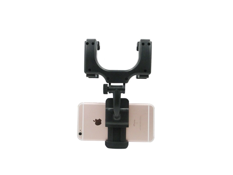 Може да се фиксира към огледалото за обратно виждане на автомобила, може да се завърти на 360 градуса, просто и практично. Има възможност за регулиране спрямо размера на огледалото и мобилното устройство.