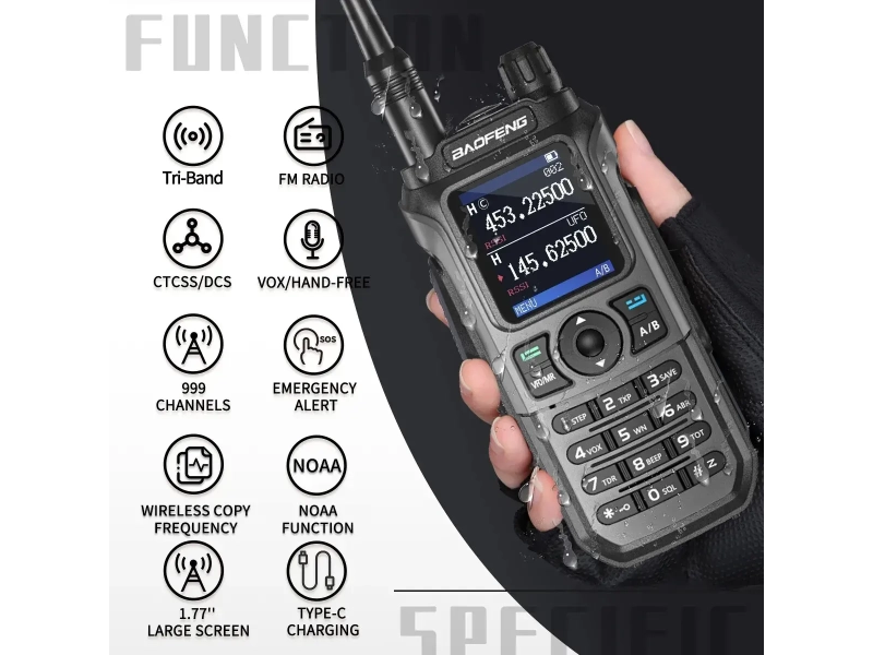 Спецификация:Тип: Двуканална радиостанция (Dual Band)Честотен обхват:VHF: 136-174 MHzUHF: 400-520 MHzМощност на предаване: 8W (висока мощност)Максимален обхват: При оптимални условия може да достигне до 10-15 кмТип батерия: Li-ion батерия с капацитет 2800mAhВреме на работа: До 12-16 часа в зависимост от интензивността на използване, до 48 часа в режим на изчакванеПорт за зареждане: USB Type-C за бързо зарежданеРазмери: 115 x 56 x 34 ммТегло: 260 г (с батерия)Дисплей: LCD дисплей с подсветка за лесна работа при слаба осветеностИздръжливост: Удароустойчив корпус, създаден за работа в тежки условияПотребителски интерфейс: Удобни бутони и копчета за бързо и лесно управлениеФункции и възможности:• Честота на тридесет ленти68-108MHZ (FM)136-174MHZ (RX/TX)220-260MHZ (RX/TX)400-480MHZ (RX/TX)• Type-C USB зареждане: Зареждането тип-C е тенденция за мобилни устройства, тъй като има ниски изисквания за източници на захранване и места. UV-21 Pro е Type-C USB презареждаема, за което можете лесно да я зареждате като телефон в колата си, със захранваща батерия или лаптоп. • Натиснете бутона за меню, за да влезете в интерфейса “FQSCAN”. Натиснете отново Меню и UV-21 Pro ще търси друга честота на радиопредаване и код за поверителност. Накрая натиснете менюто, за да запаметите честотата. • Нова тенденция черна технология 1,77-инчов дисплей с голям екран с висока разделителна способност. Има 2 различни режима на показване на честота и канал, които отговарят на вашите различни нужди. • Освен програмиране на радиото чрез компютърен софтуер, потребителите могат също да използват клавиатурата, за да програмират повечето настройки в менюто, например добавяне/изтриване на канал от паметта, добавяне/премахване на канал от списъка за сканиране, регулиране на VOX/шумоподтискане/пестене на енергия нива и др.• Двуканална работа (Dual Band): Възможност за работа на две различни честоти (VHF/UHF) едновременно, което увеличава ефективността при комуникация• Безжично копиране на честоти: Може да копира честотите от други радиостанции чрез безжичен трансфер, което прави настройките по-лесни и удобни• Поддръжка на CTCSS/DCS: Система за намаляване на шума и намаляване на интерференцията с други радиостанции• Сигнал за ниско ниво на батерията: Индикация на дисплея за изтощена батерия• Гласови функции: Възможност за комуникация с гласови съобщения• Поддръжка на DTMF: Поддръжка за кодове DTMF за дистанционно управление и контрол• Вградени функции за безопасност: Вграден SOS сигнал за спешни случаи• Възможности за свързване: Може да се свързва с външни антени за допълнителен обхватКомплектът включва:1 X Радиостанция1 X Антена1 X Li-ion батерия1 X Type-C USB зарядно1 X Основно зарядно устройство1 X Закопчалка за колан1 X Връзка за ръка1 X Ръководство за потребителя1 X Отвертка