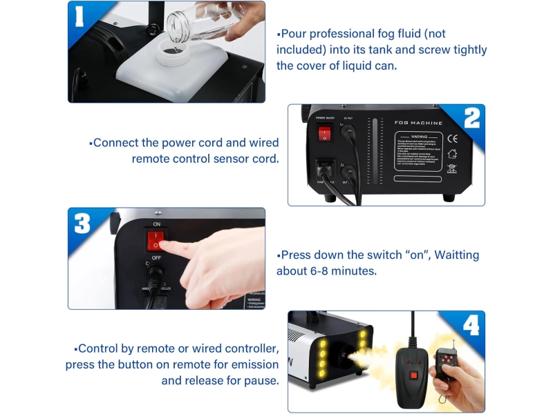 Подходящо за малки събития, партита, кръщенета, сватби, откриване на магазини, компании за събития, dj. Smoke Machine с дистанционно управление е най-добрата джаджа за вашите партита!