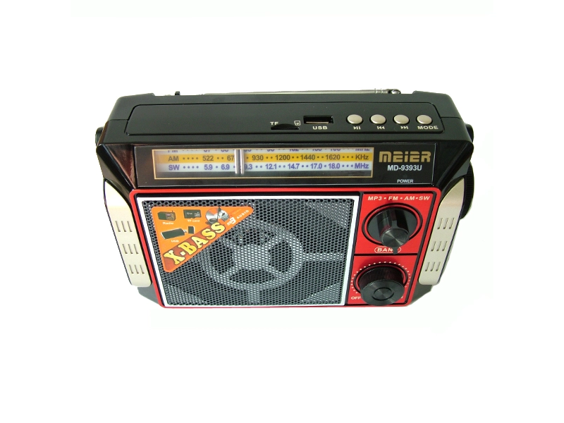 Компактен и стилен преносим радиоприемник, мощен FM радио AM и SW3, Mp3 с USB порт, AUX вход, MP3 Player, акумулаторна батерия, microSD card карта памет за телефон, таблет, лаптоп, смартфон MEIER MD-9393BT