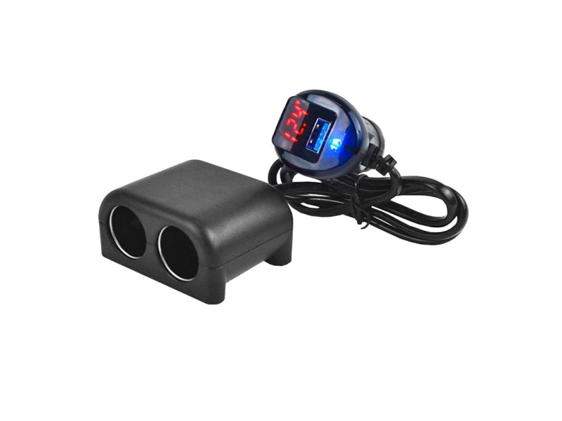 Двоен разклонител на запалката + 1 USB изход за зареждане на Таблети, Навигации, Телефони, Игри и др. Все по-необходим, удобен и търсен продукт с елегантен дизайн и индикатор за захранване.Основни характеристики: ⇒ Входящо напрежение: 12V/24V⇒ Изходящо: 2 броя куплунг запалка + 1 броя USB - 1000мА/2100мА⇒ Дължина на кабела: ~ 75 см.⇒ Габаритни размери: 9.7 х 6.5 х 3.5 см.⇒ Тегло: 100 гр.⇒ Волтметър за нивото на акумулатора⇒ Вграден бушон в куплунга за запалката