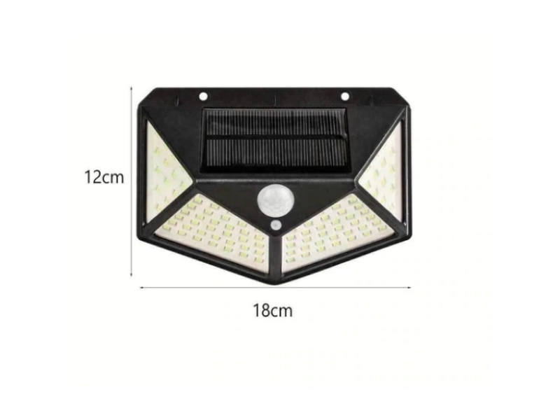 Соларна лампа с 100 LED диода и сензор за движение. Перфектно външно осветление за градини, дворове и пътеки. Водоустойчива, лесна за монтаж, без кабели.