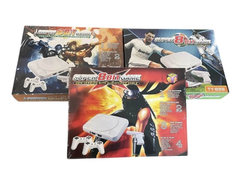 Ретро телевизионна игра Nintendo Super 8bit с класически игри като Super Mario, Duck Hunt и Fifa Soccer. Включва 2 джойстика и пистолет. Лесна за свързване с телевизор.