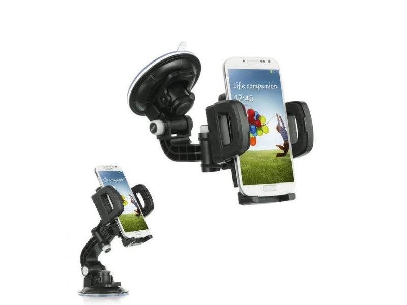 Универсална поставка за телефон и други мобилни устройства. Подходяща за поставяне в автомобила, на съклото, на таблото или всякаква гладка повърхност.Изработен с удобен и функционален дизайн. Притежава вакуумна основа със сигурно зекрепване БЕЗ риск от падане и автоматични щипки за здраво захващане на телефона.Стойката е с издължено рамо, така че лесно да достигате телефона си. Разполага с 360 градусова ротация и няколко разчупени точки за удобно наместване и фиксиране в желаната позиция.Характеристики:Материал: ABS;Вакуумно закрепяне с бутон за лесно отключване и заключване на вакуума;Подвижно рамо с три заключващи стави за фиксиране на поставката;Автоматично рагръщане на щипките на поставката;Сгъваеми държачи за устройството в основата на главата на поставката;Лесна за употреба и мотнаж;360 градуса завъртане;Размери: 20 х 9 х 14 см;Цвят: Черен;