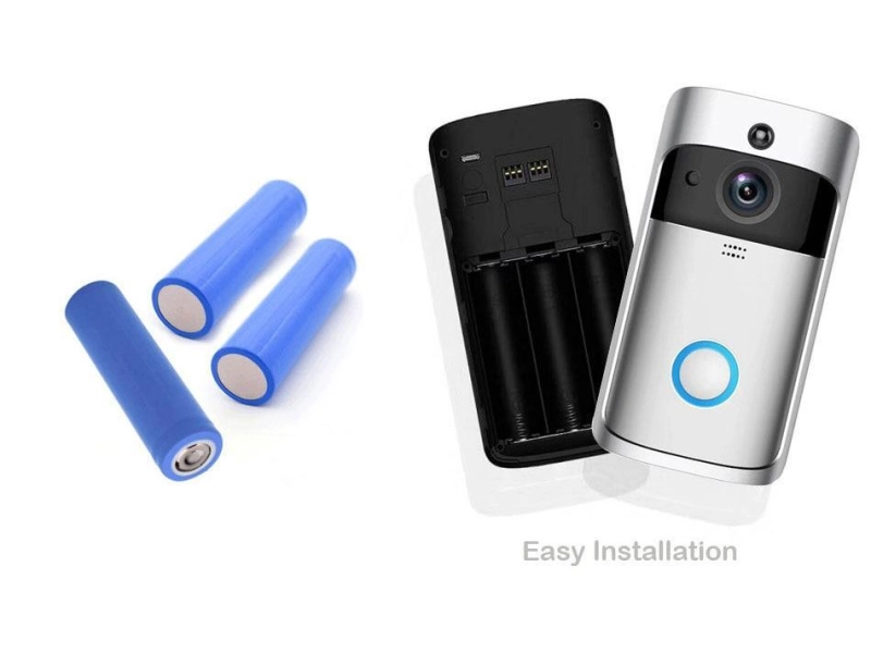 - Видео звънецът разполага с три акумулаторни батерии със спецификация 18650. Те се зареждат с USB кабел, който може да включите в контакта