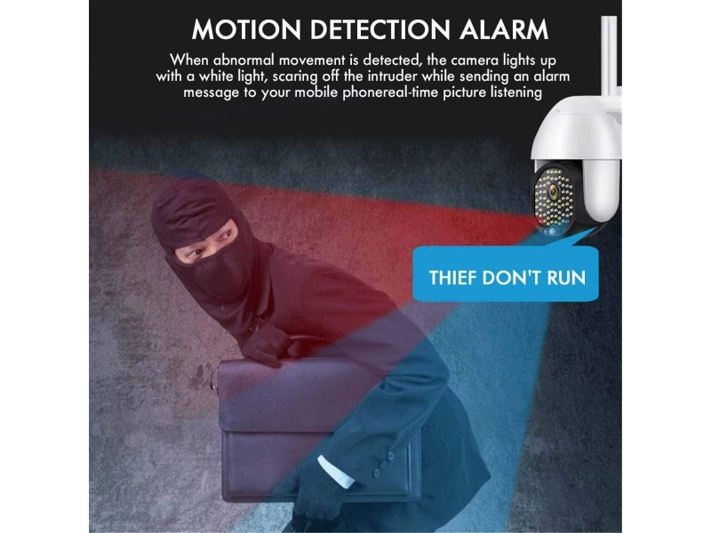 Мощна Външна Водоустойчива Камера Wifi Full HD 2.0MP 68 LED 320° автоматично въртяща, куполна от ново поколение! ЦВЕТНО НОЩНО ВИЖДАНЕ! Широкообхватна! Перфектно качество и на нощен запис! До 8 пъти ZOOM! IP66 влаго и водоустойчивост! Най-мощния и качествен модел предлаган до момента е само при нас! Inteligent tracking за автоматично завъртане и следене на обекти. Камерата притежава функцията Motion Tracking + Inteligent tracking (автономно завъртане и следене на обекта), а не само моушън детекшън ( нотификации при движение в обсега на камерата). Камерата използва приложението ycc365plus. Чисто нови въртящи (PTZ) на 320° градуса по хоризонтала и 90° градуса по вертикала се безжични WIFI IP Full HD камери със резолюция 1920х1080 FULLHD, 2.0MP Lend , 3.6mm фокусПрахо-влагоустойчиви, покриват стандарт IP66 могат да бъдат поставени на открито. Снабдени с 68 ДИОДА, които могат да покрият до 30 метра видимост през тъмната част от денонощието. Интегриран слот за поставянето на микро карта (microsd) до 128гб капацитет, за запис на видео и/или снимки. Опция за свързване към WiFi рутер и гледане дистанционно посредством мобилни данни или WiFi връзка на телефона. Вграден сензор за движение при, който камерата може да записва единствено и само когато има движение пред нея. В камерата е монтиран микрофон и високоговорител, така че да слушате какво се случва около камерата, а посредством високоговорителя можете от телефона да говорите и да се възпроизвежда от камерата.Спецификация:- Видео резолюция 1920х1080 fullhd, Lens, 2.0MP Image 3.6mm фокус- Сензор - HI3518E+SC2235 15fps- Свързаност - безжично през WiFi 2.4g b,g,n до 50 метра в зависимост от сградите, жично през LAN/UTP/ кабел.- Подръжка на ONVIF протокол /камерата може да бъде звързана към мрежов видео рекордер NVR.Софтуер:- Бърза и лесна настройка в рамките на 5 мин. Приложенията разполагат с богата гама от различна конфигурация на камерите.- Сензор за движение - 3 типа чувствителност /ниска, средна, висока/. Известяване на телефона при наличието на движение. -Дистанционно гледане на записаните видео клипове или снимки от картата памет през приложението.- Качество на записваните видео клипове: 6 степени.- Време на записване при движение - от 5 до 120 мин + запис на звук, презапис при запълване на картата памет- Скорост на въртене на камерата - слабо, нормално, бързо.- Камерите предоставят достъп през WEB интерфейс по IP адреса, който взема.Комплекта включва: PTZ /въртяща камера/, захранващ адаптер 12v, 2a * Гаранция: 24 месеца