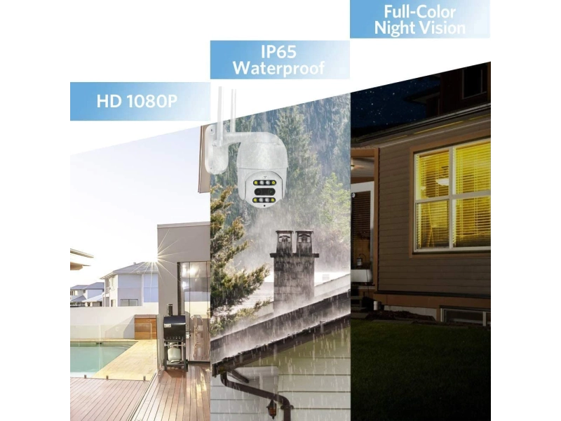 Wifi камерата Dual Lens PTZ e водоустойчива и е подходяща за външни условия, може да се настрой и монтира за няколко минути, без необходимост от допълнителни устройства или кабели. Защитата за водоустойчивост е IP66.